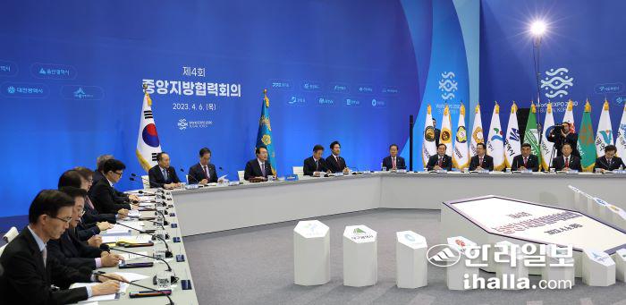 윤석열 대통령이 6일 부산 벡스코에서 제4회 중앙지방협력회의를 주재하고 있다. 연합뉴스