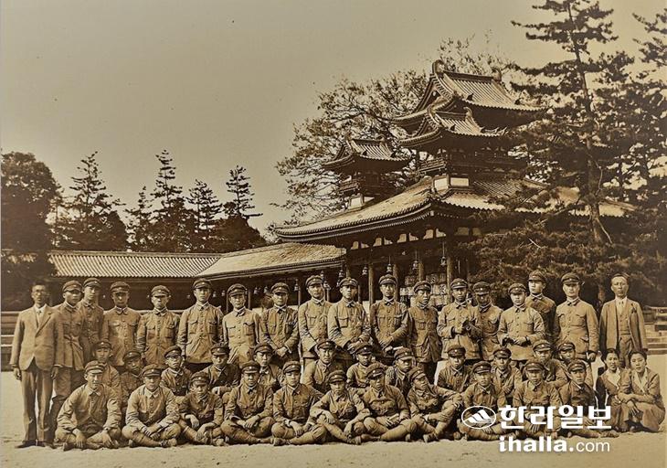 1939년 제주공립농업학교 수학여행. 일본 교토 헤이안 신궁을 찾았던 모습이다. 제주교육박물관 제공