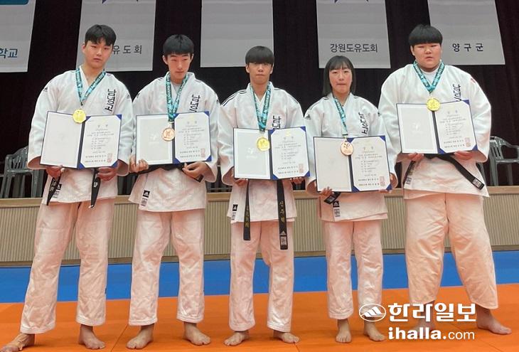 2023 용인대총장기 전국 남녀중고등학교유도대회에서 입상한 남녕고 김세림, 강성현, 오상우, 김예림, 이현지(왼쪽부터).