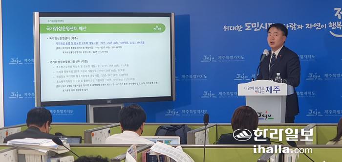 정대원 한국항공우주연구원 국가위성정보활용지원센터장이 11일 제주도청 기자실에서 브리핑을 하고 있다. 강다혜기자