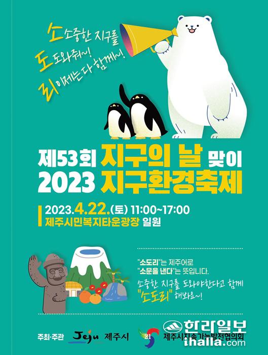 [한라일보] 4월 22일은 53회째를 맞는 지구의 날. 제주시는 이날 오전 11시부터 오후 5시까지 제주시민복지타운 광장에서 '2023 지구환경축제'를 열고 지구의 날 의미를 시민들과 나눈다.