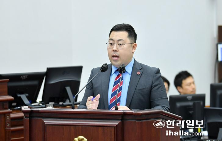 17일 한동수 의원이 김광수 교육감을 상대로 사교육 대책과 연계해 진로진학지원센터 인력 확충 등 운영 개선 방안을 질문하고 있다. 제주도의회 제공