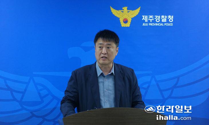 제주경찰청 문기철 여성보호계장이 19일 가해자 교화프로그램 시범 운영 결과를 브리핑 하고 있다. 김도영기자