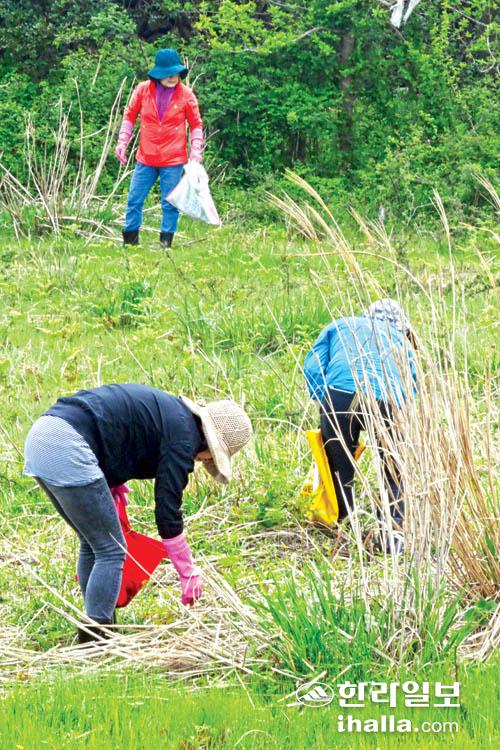 [한라일보] 19일 서귀포시 남원읍에 위치한 한 들판에서 시민들이 고사리 채취에 열중하고 있다. 이상국기자