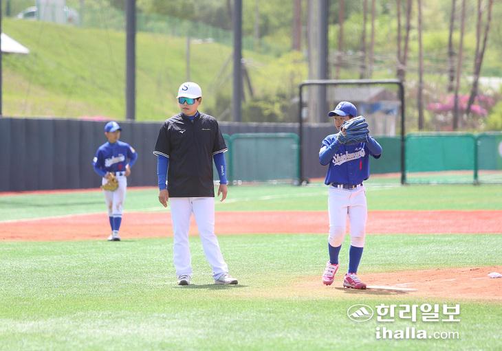 22일 천안야구장에서 열린 제19회 천안흥타령기 전국초등학교 야구대회 신광초와 전주진북초의 경기에서 신광초의 김태범 감독이 선수들에게 작전을 지시하고 있다.