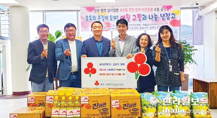 광덕전력(대표 고윤석)은 지난달 27일 제주시 애월읍(읍장 김기완)에 방문해 '애월고팡과 나눔 냉장고' 활성화에 사용해 달라며 쌀, 라면, 참치캔, 들기름, 콩기름 등 총 200만원 상당의 후원 물품을 기탁했다. 또한 애월읍 관내 국제가정문화원(원장 임정민)에도 300만원을 기탁해 다문화·취약 가정 아동에 대한 지원을 당부했다.