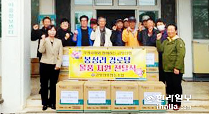 금빛신협(이사장 박여숙)은 지난달 26일 관내에 있는 봉성리 경로당에서 물품 지원 전달식을 가졌다. 금빛신협은 매년 경로당에 운영금을 지원했으나 올해는 약 100만원 상당의 갑티슈를 전달했다.