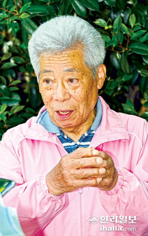 마을주민으로 구성된 '소메이요시노 사쿠라를 지키는 모임'의 대표 세키네 하루오 씨가 본보 취재팀과 인터뷰하고 있다. 강희만기자