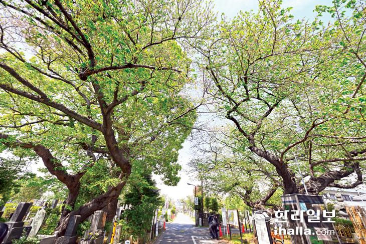 옛 소메이촌(현재 일본 도쿄 도시마구 고마고메)에 심어진 왕벚나무들이 울창하게 자라고 있다. 공습으로 폐허가 된 마을을 살리기 위해 80년 전부터 다시 심어진 이 지역 왕벚나무는 주민, 도시마구 등에 의해 보존·관리되며 마을의 상징이 되고 있다. 강희만기자