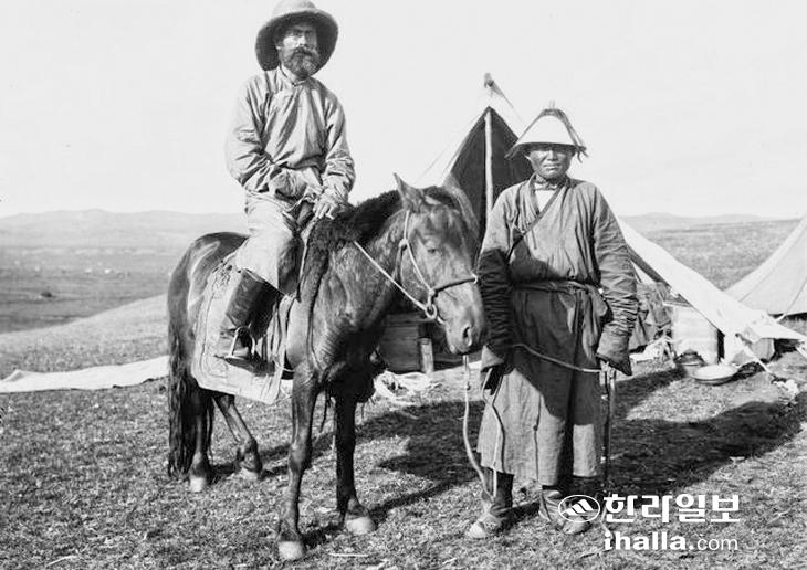 몽골 탐사 중의 구스타프 람스테트(1873~1950), 한국어 어원연구, 한국어 문법 등을 저술했다. 위키피디아 제공