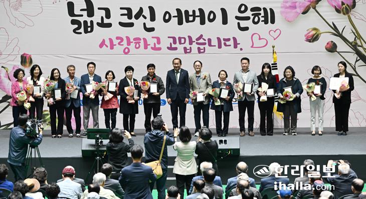 제51회 어버이날 기념식이 8일 2000여명의 어르신 등이 자리한 가운데 제주시 한라체육관에서 열렸다. 이날 기념식에서는 어르신들의 복지 증진과 처우 개선을 위해 헌신한 유공자 등에 대한 표창도 수여됐다. 이상국기자