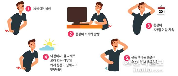 [한라일보] 책상에 앉아 업무를 하다 보면 허리와 목 등이 뻐근한 느낌을 자주 받는다. 현대인의 고질병으로 치부해 버리거나 앉아있는 내 자세의 문제로 여길 수 있지만 통증이 지속적으로 반복된다면 강직척추염을 의심해 볼 필요가 있다. 이번 주 제주인의 건강다이어리에서는 제주대학교병원 류마티스내과 정우성 교수의 도움을 받아 강직척추염에 대해 알아본다.