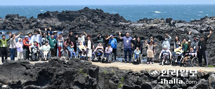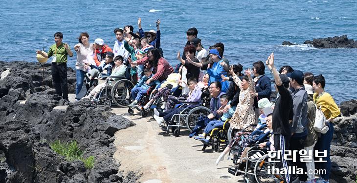 [한라일보] 바닷가 즐기기11일 제주시 용담해안가를 찾은 관광객들이 푸른 바다를 배경으로 기념사진을 찍고 있다, 이상국기자