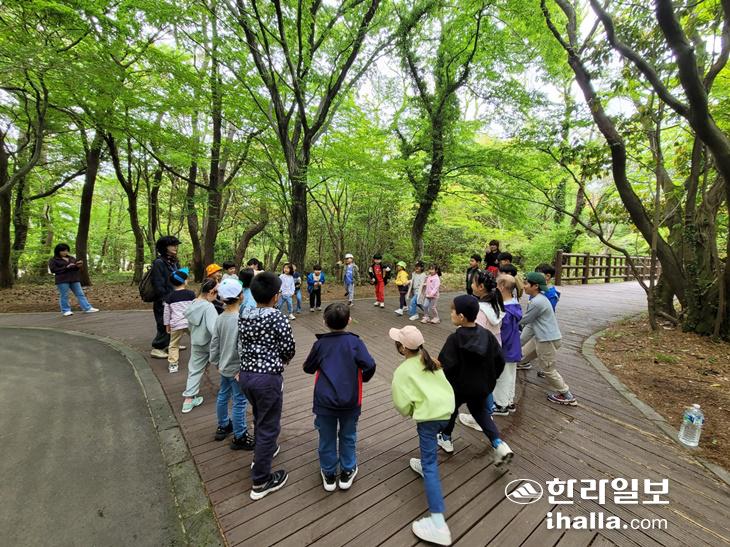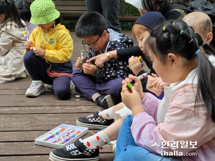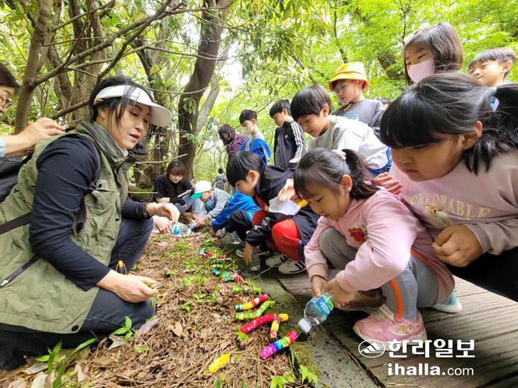 이날 참여한 임새별 학생은 "숲에서 친구들과 밤, 나무잎을 만져봤는데 보들보들해서 기분이 좋았다"며 "제일 기억에 남는 것은 애벌레 만들기였는데, 하얀 티슈에 색을 칠하고 물을 비웠는데 애벌레처럼 길어져서 정말 신기했다"고 말했다.