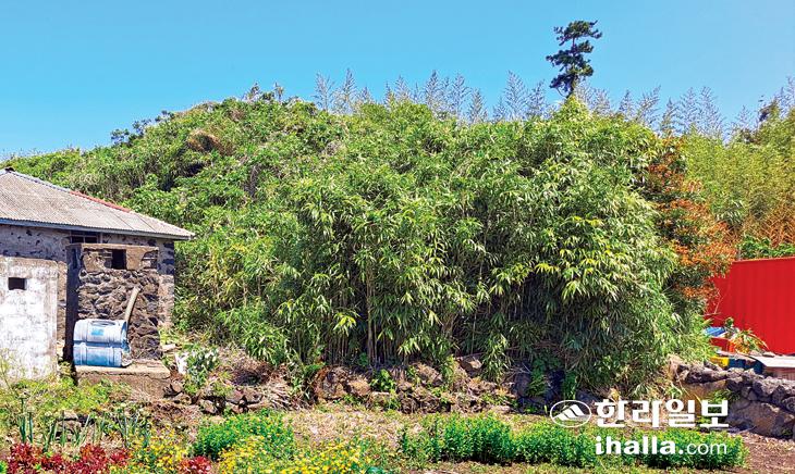 옛 정의현성이 각종 개발로 산재 된 데다, 그 원형을 잃고 있어 이에 대한 보전방안이 요구된다. 사진은 성담 일부가 남아 있는 주택 뒤편의 대나무숲 전경.