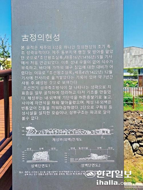 [한라일보] 현재 서귀포시 표선면 성읍민속마을에 있는 정의현성은 원래 인근 성산읍 고성리(古城里)에 위치해 있었다. 고성리의 지명이 '옛 성이 있었던 마을'이라는 의미를 담고 있는 것도 이 때문이다. 하지만 당시 해안과 불과 1㎞가량 떨어져 있던 정의현성이 잦은 왜구의 침입과 행정구역상 접근 편의성 등의 이유로 성읍마을로 이설됐다. 이후 남은 성곽과 주변은 지난 600년이라는 세월이 흐르면서 원형이 많이 훼손됐다. 2021년 '향토유형유산'으로 지정됐으나 기초조사와 연구조차도 미미한 실정이다. 이에 복원을 통한 체계적인 보전 방안과 성터를 중심으로 하는 문화·역사·관광자원으로의 활용방안에 대한 고민이 시급하다.
