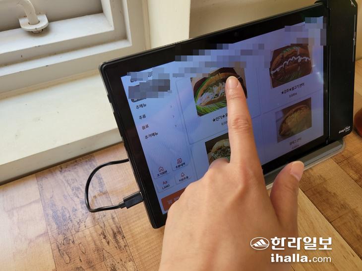 제주시의 한 음식점에서 손님이 직접 주문과 결제를 하는 태블릿 메뉴판.