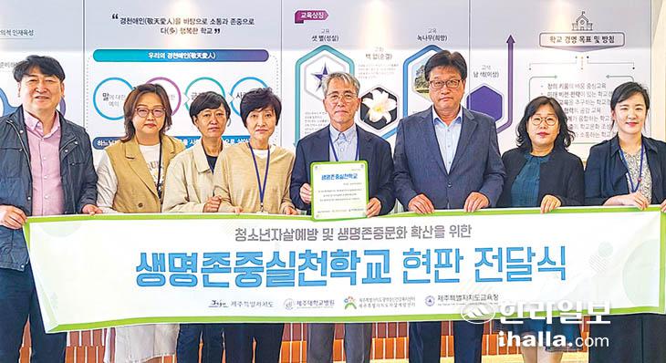 제주도교육청은 학생 자살 예방과 생명 존중 문화 확산을 위해 제주도광역정신건강복지센터 부설 자살예방센터와 함께 올해 5개의 '생명존중 실천학교'를 선정해 지난 10일부터 현판식을 진행하고 있다. 대상 학교는 제주외고, 한국뷰티고, 중문고, 신성여중, 서귀포중이다.