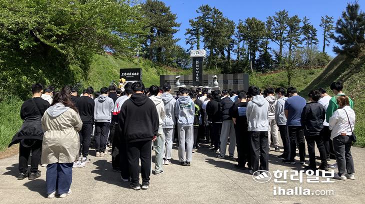 제주도교육청이 가칭 '서부 4·3 학생교육관' 조성을 위한 사전기획 용역을 추진한다. 사진은 한림중 학생들의 대정읍 일대 4·3유적지 탐방 모습. 제주도교육청 제공