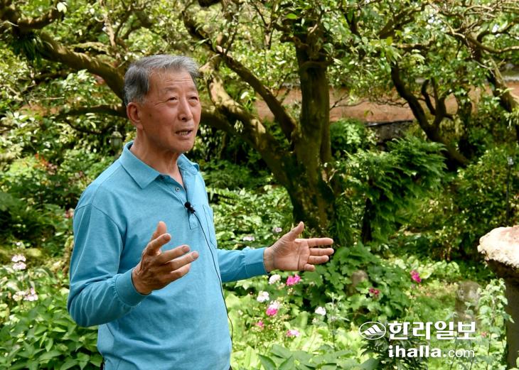 [한라일보] 불현듯 찾아온 만남처럼 나무와 인연을 맺었다. 한 그루 두 그루 더 심은 게 시작이 됐다. 꽃 하나, 풀 한 포기도 손수 뿌리내리게 했다. 텅 비었던 2000여 평의 땅이 이제는 수많은 생명을 품는다. 올해로 20여 년째 정원을 가꾸고 있는 김학우(67) 씨의 이야기다.