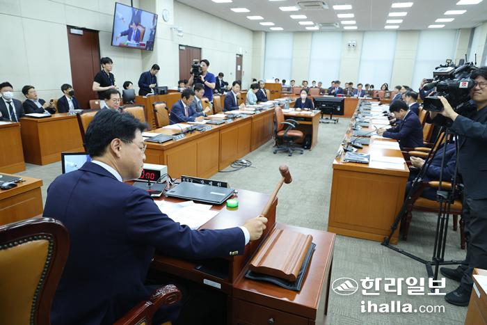 24일 오후 국회에서 열린 행정안전위원회 전체회의에서 장제원 위원장이 회의를 주재하고 있다. 연합뉴스