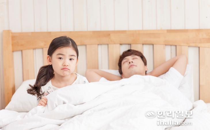 아이가 부모와 함께 자는 데 부모가 불편함이 없다면 일찍부터 떼어낼 필요는 없습니다.사진=클립아트코리아