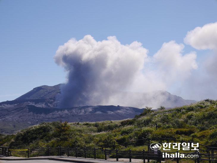 화산활동 중인 아소산 외륜의 나카다케 분화 모습. 위키미디어 커먼즈 제공