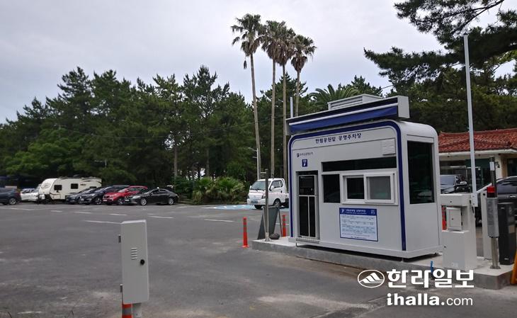 주차 관제 시설을 갖추고 인근 협재해수욕장 주차장처럼 올해 피서철에 한시적으로 유료 운영이 이뤄질 예정인 한림공원 앞 공영주차장. 진선희기자