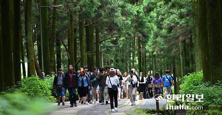 [한라일보] 8일 제주시 절물자연휴양림을 찾은 외국인 관광객들이 제주의 푸른 초여름을 즐기고 있다. 이상국기자