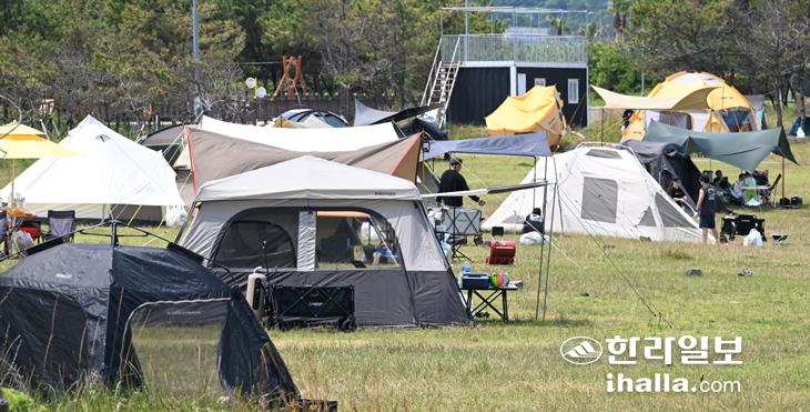 11일 제주시 김녕해수욕장 야영장이 나들이를 나온 캠핑객들로 북적이고 있다. 이상국기자
