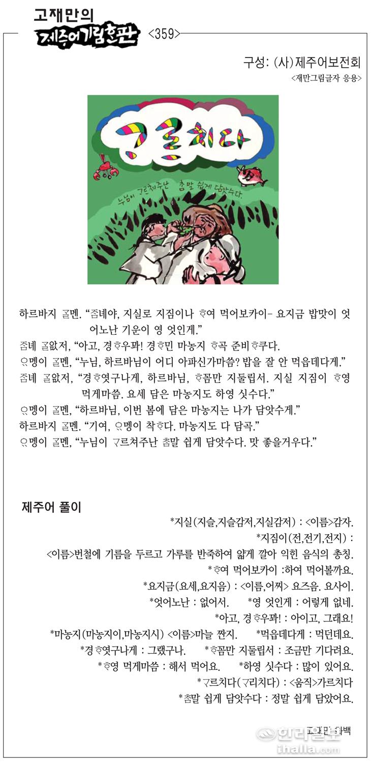 [고재만의 제주어기림혼판] 제주어 풀이(359)