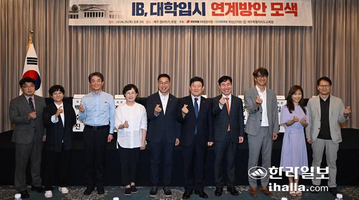 [한라일보] IB(국제 바칼로레아) 교육을 국내 대입 전형에 반영할 수 있는 제도적 장치가 시급하다는 의견이 나왔다. 29일 오후 제주도교육청이 국민의힘 하태경 의원, 더불어민주당 위성곤 의원과 공동 주최로 제주 캠퍼트리호텔에서 진행한 'IB, 대학 입시 연계 방안 모색 세미나'에서다.