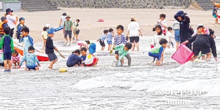 29일 제주시 이호테우해수욕장을 찾은 어린이들이 시원한 바닷물에 발을 담구며 즐거운 시간을 보내고 있다. 이상국기자