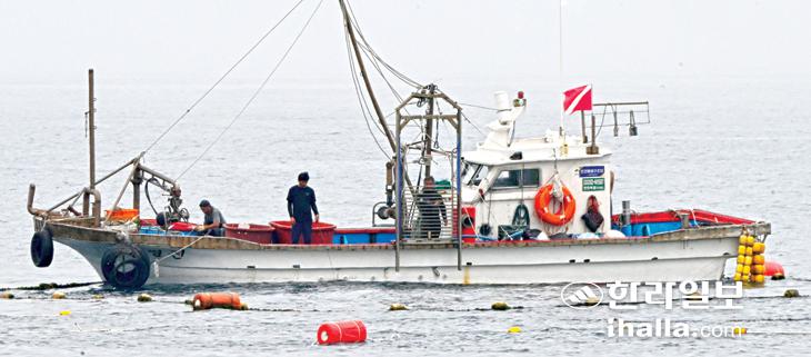 4일 제주시 애월읍 앞 바다에서 어민들이 조업을 하며 분주한 시간을 보내고 있다. 이상국기자