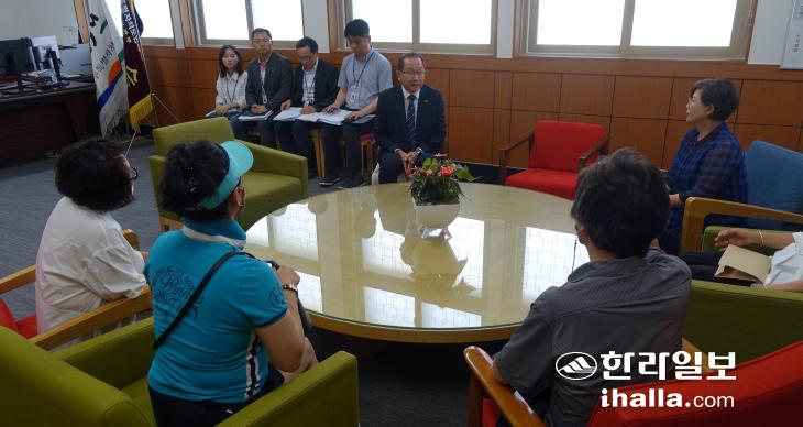 5일 제주시청에서 진행된 강병삼 제주시장과 상인회의 면담 현장.
