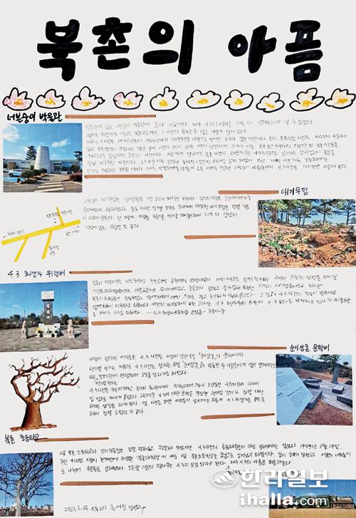 ③ 활동 : '북촌의 아픔', '4·3 흔적을 그리다', '4·3 거울속으로 인권을 보다', '무명천속에 숨겨진 진아영 할머니', '무명천 할머니의 고통스러운 마음에 공감하며' 라는 제목으로 탐방후기 작성하기