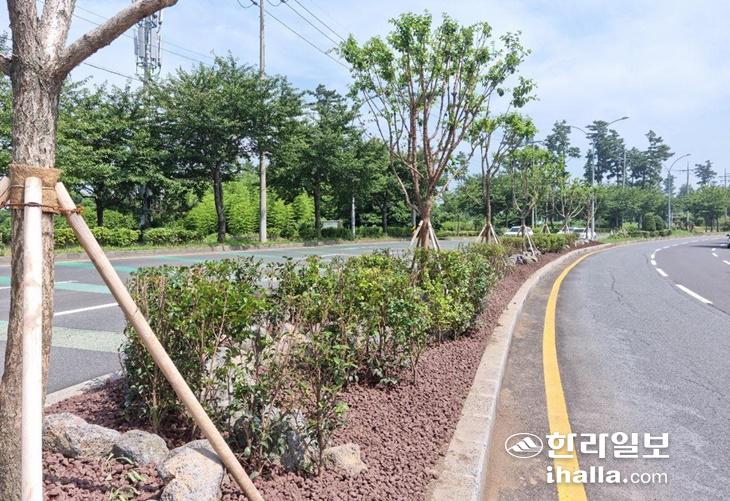 제주시가 최근 아라동 도로 여유 공간을 활용해 중앙식수대를 만들어 가로수를 심었다. 제주시 제공