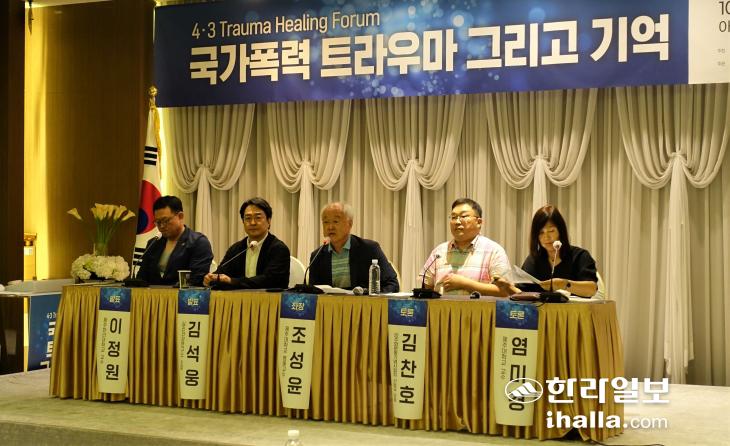 20일 열린 '2023년 4·3트라우마센터 치유포럼 국가폭력 트라우마 그리고 기억' 포럼에서 참가자들이 토론을 하고 있다.