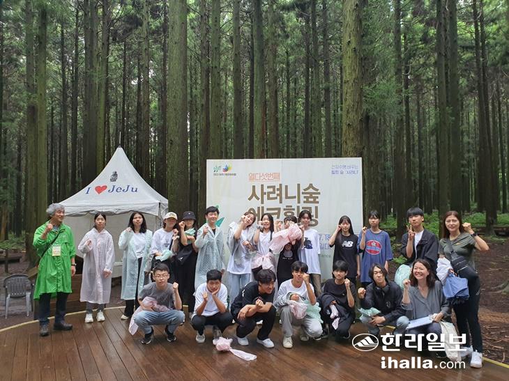 지난 22일 사려니 숲 아카데미에 참가한 무릉중학교 학생들. 사진=산림문화체험 사려니숲길위원회