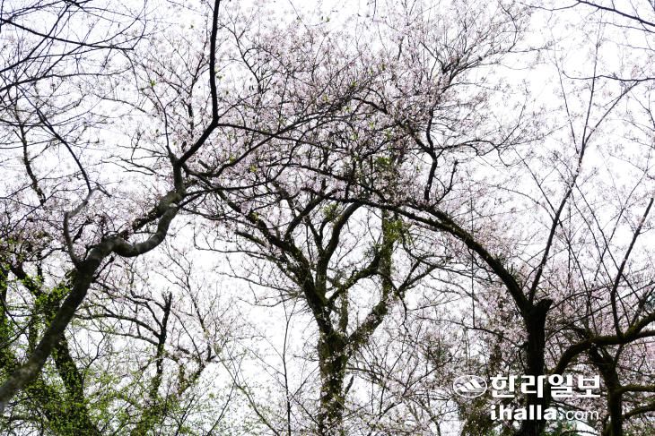 가지마다 연분홍 꽃을 피운 제주 최고령 왕벚나무. 한라일보 DB