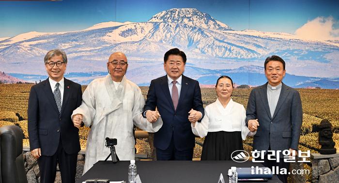 25일 제주도청 백록홀에서 열린 오영훈 제주지사와 제주종교지도자협의회간 면담. 강희만 기자