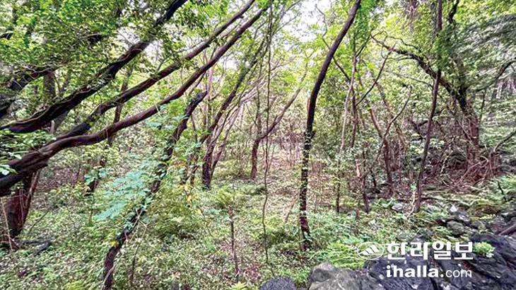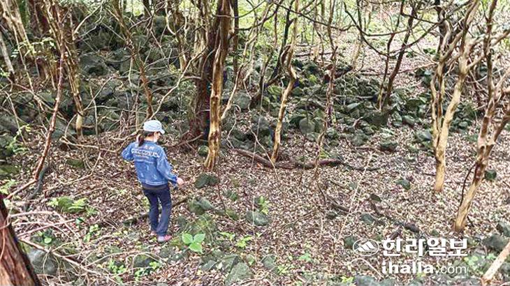 남원읍 한남리 ‘설록다원’ 인근 임야에도 대형 숨골이 자리하고 있다. 숨골 내·외부에는 암반과 크고 작은 나무들이 덩굴식물들과 함께 자생하고 있었다.