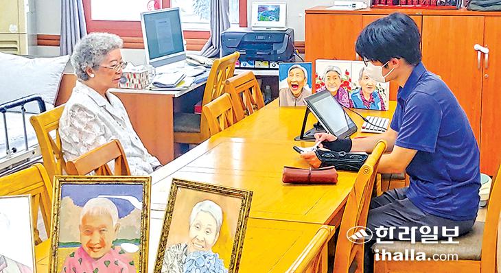 제주도내 사회복지시설에서 복무 중인 사회복무요원이 어르신들의 초상화를 그려 드리는 선행을 이어나가고 있다.