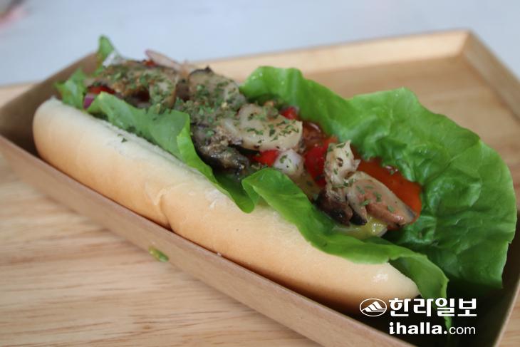 자숙소라를 넣어 만든 핫도그. 사진=제주어촌특화지원센터
