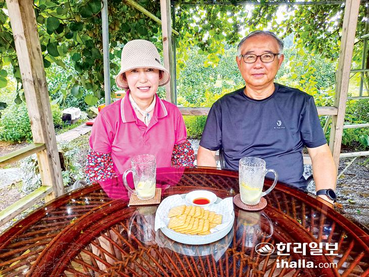 '치유농업'을 소망하는 서귀포시 표선면 세화리 소재 말선명품제주감귤농원에서 만난 노창래(오른쪽)·고말선 부부. 백금탁기자