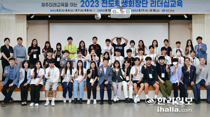 김광수 교육감이 8월 한 달간 2023 전도학생회장단 리더십 교육에 참가하고 있는 도내 초·중·고 학생들과 잇따라 공감 토크를 이어가고 있다. 제주도교육청 제공