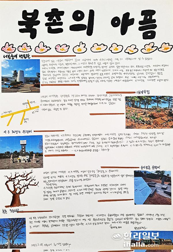 [한라일보] 지난 6월부터 생각을 춤추게 하는 NIE는 '제주 4·3을 기억하다'라는 주제로 4·3을 통해 평화와 인권의 가치를 되새겨보는 다양한 활동을 진행했다. 4·3의 전개 과정을 익히고 피해자들의 증언들을 직접 들어보며 피해 지역을 탐방해 보기도 하면서 4·3에 대한 깊은 인식과 피해 실천들에 대해 고민해보는 시간이었다.