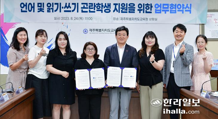 제주도교육청이 24일 한국언어재활사협회와 읽기 곤란 학생 등을 보다 체계적으로 지원하기 위한 업무 협약을 체결하고 있다. 제주도교육청 제공