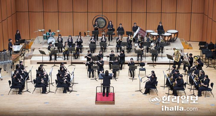 춘천전국관악경연대회 제주동여중 연주 장면. 춘천전국관악경연대회조직위원회 제공