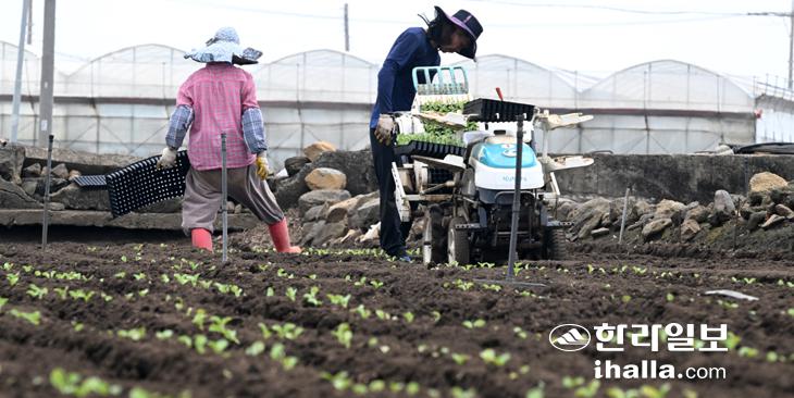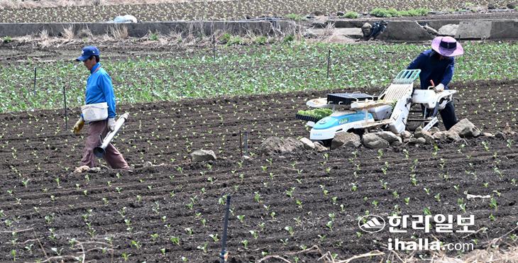 [한라일보] 29일 제주시 한경면 고산리 한 밭에서 농민들이 브로콜리 파종 작업을 하고 있다. 이상국기자